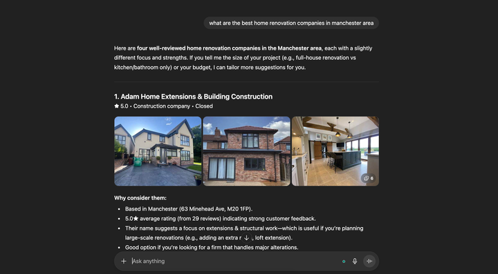 In many cases, the Trustmary review page is cited as an answer to users’ queries. The queries often are something like “recommend a good roofing company in my area” or “what is the best gym in my area”.